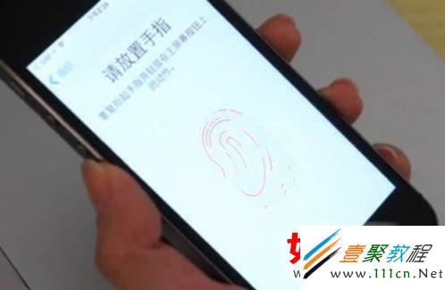 7)接下來系統會提示把想要設置指紋的手指放到“主屏Home”按鍵上,請用手指輕觸主屏Home按鍵,反復用手指輕觸,直到系統完整自己的指紋記錄;(如下圖所示)