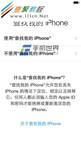4)創建好Apple ID後,點擊同意條款與條件,對於“查找我的iphone”大家可以根據自己的需要選擇。