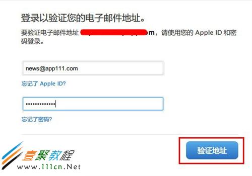 在新的頁面裡填寫上我們注冊的AppleID和密碼,點擊“驗證地址”