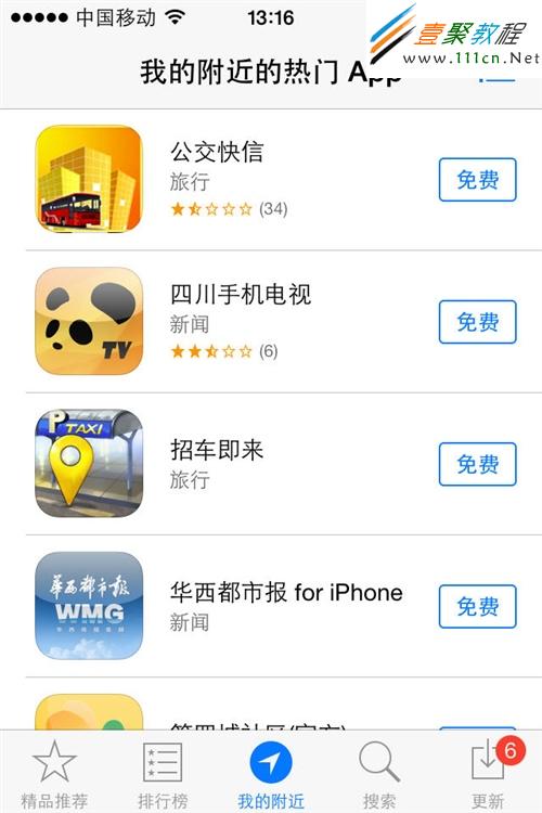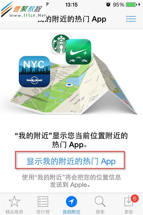 2:然後我們如圖找到App Store界面下,點擊“我的附近”頻道名