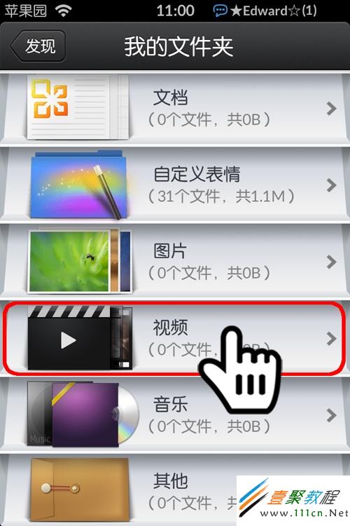 第3步:打開“我的文件夾”,可以看到裡面有很多的分類,這裡我們只用到視頻:
