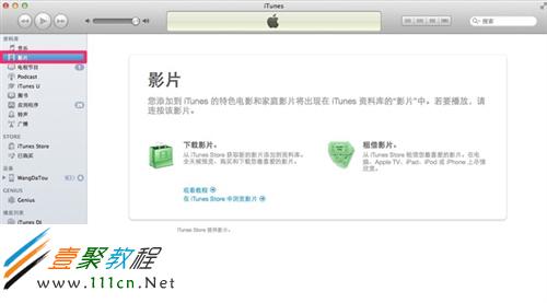 4.如圖所示,你會看到iTunes有你的影片我了,這代表己導入電影到了itunes中了。