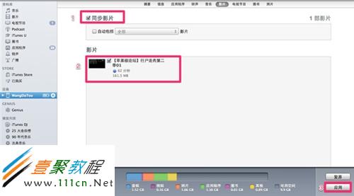 5.最後一步我們是點擊設備,然後點擊“同步影片”,勾選需要同步的影片,最後點“應用”。