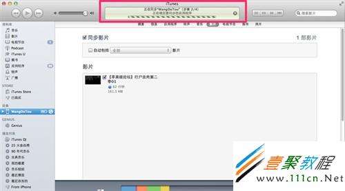 3.現在我們直接把在電腦中的電影直接拖入你的iTunes中 ,如下圖itunes會自動加載電影進入