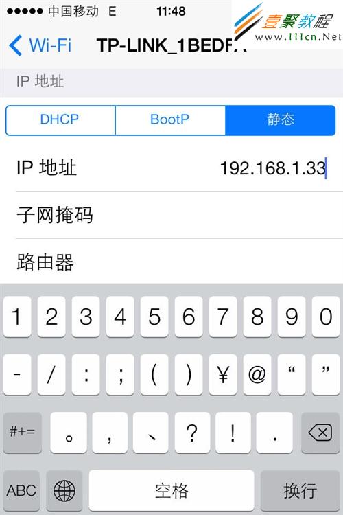 在“IP地址”一欄中切換到“靜態”,依次輸入IP地址、子網掩碼等參數(圖片僅供參考):