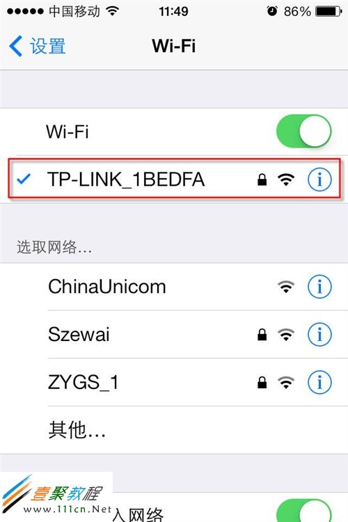 第四步:完成操作之後wifi就會連接成功,連接成功的wifi就有一個勾圖標,並且下次iphone會自動連接wifi不需要再輸入密碼了