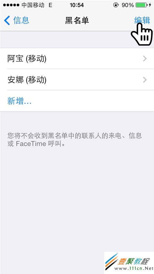 第7步:如果要取消我們在手機的黑名單中點擊編輯,然後點擊紅色的按鈕,取消阻止 即可了。