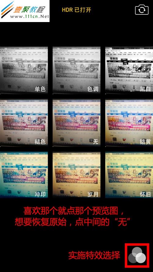 這是實時特效模式,效果很贊,另外當你使用實時特效拍照之後,存儲的照片會根據你所選擇的效果實時改變,不喜歡直接選“無”就是原始照片了,很方便。