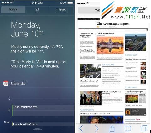 新的設計在系統內部使用了大量的半透明處理,比如鍵盤、TabBar、通知中心等。這種設計風格嚴格來講不是強調使用純色的“扁平化”的設計風格。但是在系統整體的視覺效果中表現的很自然,用Ive的話說提供了“空間感”和一致的體驗。