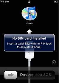 激活前iPhone會顯示以下屏幕,告知用戶必須插入SIM卡,並將iPhone連接到電腦並打開iTunes才能激活它。