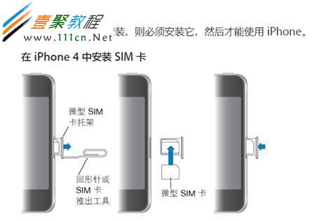 3. 將SIM/USIM卡放入iPhone手機中,放入SIM/USIM卡的方法見附加說明2;