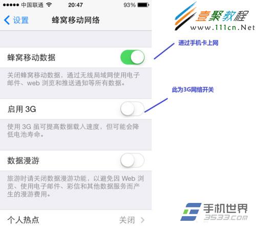 1)在ios7界面點擊“設置”-“蜂窩移動網絡”
