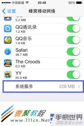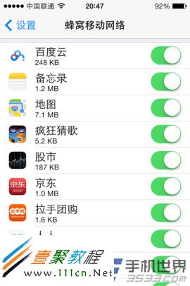 3)在ios7蜂窩移動網絡數據管理中我們可以對每個應用程序進行單獨的設置哦