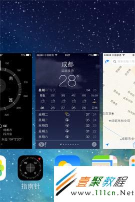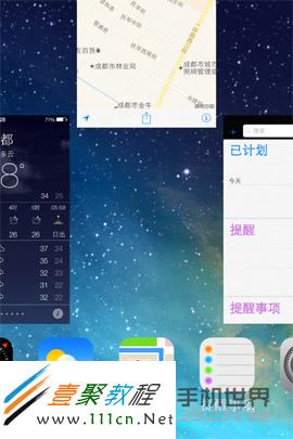 個人感覺上面的關閉後台程序講得比較復雜了,其實很簡單我們只要在主屏連續按home鍵,然後出現卡片式管理了我向上滑動要關閉的應用程序圖標即可關閉了,但有一個後台是關不了,就是桌面應用後面了。