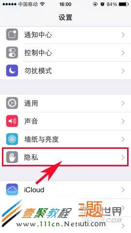 1)在iphone5s中點擊“設置”-“隱私” 選擇點擊進入