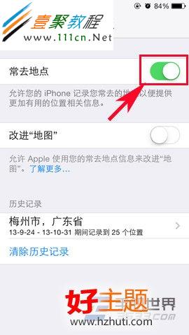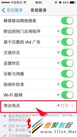 3)在“系統服務”界面就能看到“常去地點”功能了,點擊進入後對“常去地點”欄的功能按鈕進行關閉即可。
