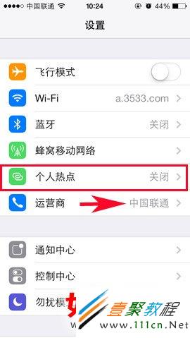 在ios7系統更智能化了,如果你使用了手機有3G信號就會看到有一個個人熱點功能了,如果沒有3G就無法查看到個人熱點了,現在只有中國聯通用戶的3G用戶才會看到有個人熱點這個功能了哦,如果是中國移動用戶就看這到個人熱點了。