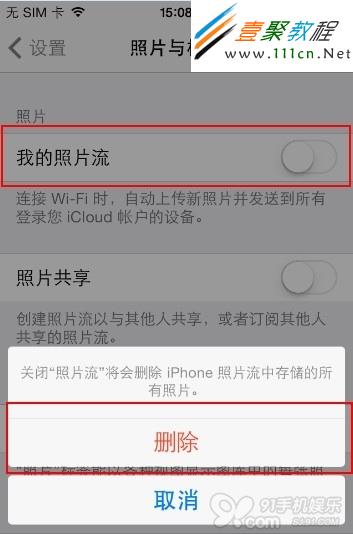 2.關閉我的照片流,我們放心點擊是就可以了,刪除之後是不是空出很大的空間了哈。