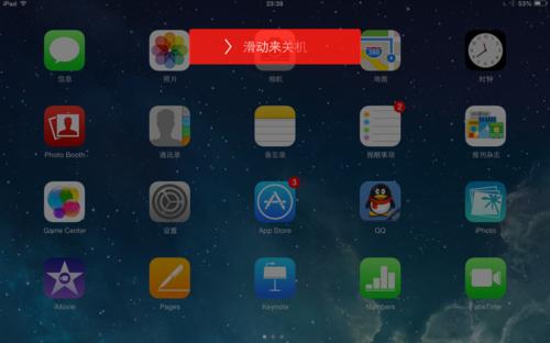2.然後我們用手按住此電源鍵,保持4秒以上,這時你ipad就會出現如下圖"關機滑塊"