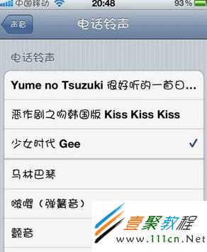 11.成功同步“鈴聲”以後 鈴聲會出現在手機的“設置”-“聲音”-“鈴聲”-“自定”裡面要用這個鈴聲,只需選擇就可以了。