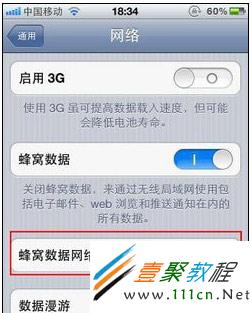 第二,進入 “設置” 菜單 “通用” 項下的 “網絡” 項下的 “蜂窩數據網絡” 項,打開蜂窩數據,重新設置下。