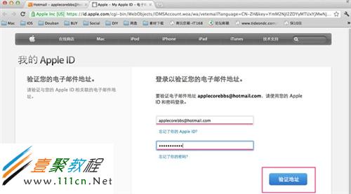 10.點擊立即驗證後,會自動打開此網頁在這裡輸入你注冊時所用的郵箱和設定的密碼,最後點擊“驗證地址”。