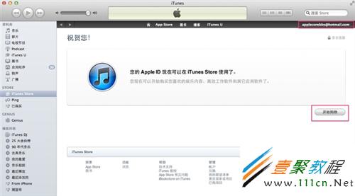 12.你已經成共登陸到iTunes Store並且注冊成功。點擊“開始購物”享受蘋果帶來的驚喜吧。