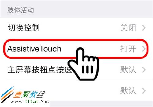 輔助功能裡面選擇“AssistiveTouch”: