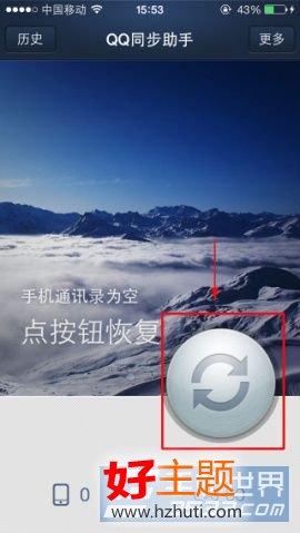 3)登錄後點擊中間的按鈕恢復通訊錄。(如下圖所示)