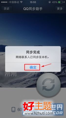 4)同步完成後會彈出提示框點擊“確定”。返回手機通訊錄就會看到已經導入的通訊錄了。(如下圖所示)