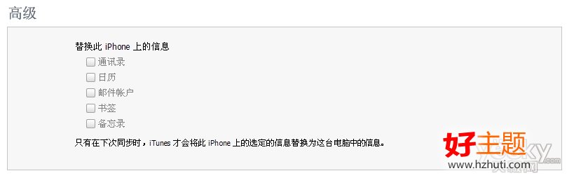 3、將iPhone與電腦連接後,打開iTunes,選擇iPhone點擊“信息”,將“同步通訊錄”前面打勾,最後選擇同步即可將Outlook中輸入好的通訊簿同步到iPhone裡面。