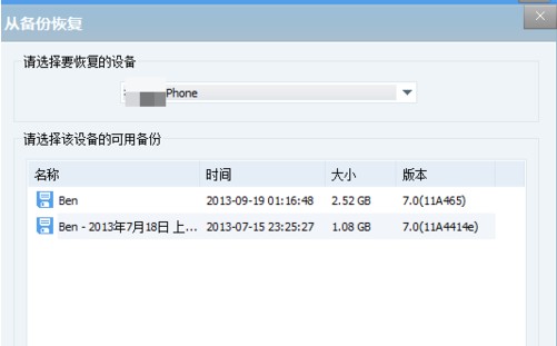 4.現在找到我們以前利用itunes 備份的數據點擊“從備份恢復”按鈕