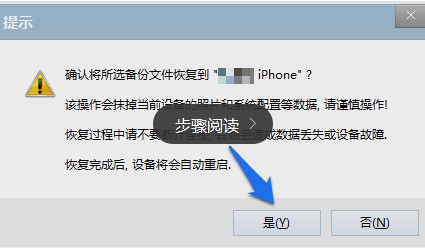6.軟件隨後會提示我們是否要恢復當前備份中的照片,數據等,點擊“是”按鈕繼續