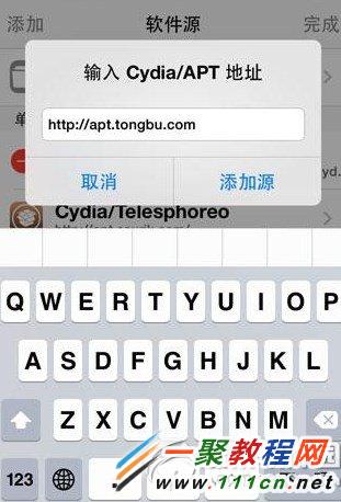 2、然後在打開的cydia中找到“軟件源” 然後我們添加“同步手機助手源”如下圖所示。
