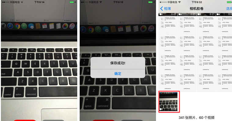 (2)點擊“停止”按鈕,停止視頻錄制。將錄制好的錄像再轉存到系統照片庫中。