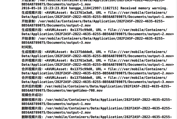 (1)每次按下按鈕錄制的視頻片段,同樣是使用 AVCaptureMovieFileOutput 輸出到 Documents 文件夾下,命名為 output-1.mov、output-2.mov....
