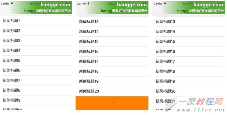 (2)當 tableView 滾動條移到底部時,會看到表格底部有正在加載的提示,並繼續加載接下來的20條數據。