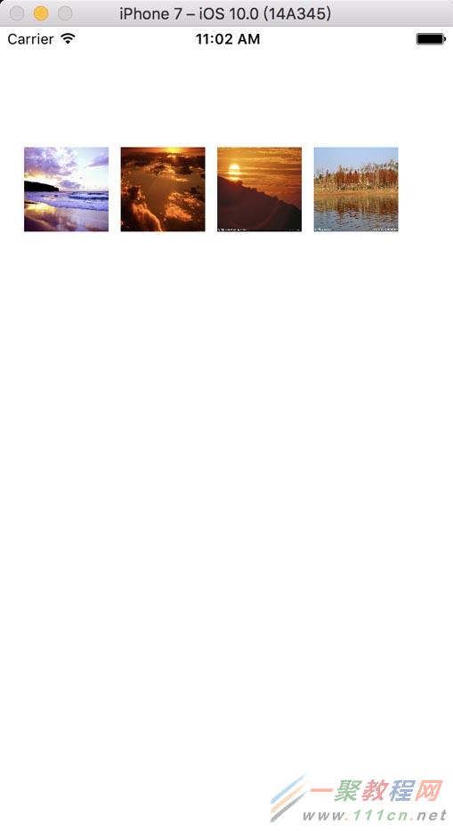 // // PhotoViewController.h // 點擊圖片放大效果 // // Created by Amydom on 17/1/9. // Copyright © 2017年 Amydom. All rights reserved. // #import <UIKit/UIKit.h> @interface PhotoViewController : UIViewController //保存圖片的數組 @property (nonatomic, strong)NSMutableArray *photoArr; //圖片 tag @property (nonatomic, assign)NSInteger imageTag; @end // // PhotoViewController.m // 點擊圖片放大效果 // // Created by Amydom on 17/1/9. // Copyright © 2017年 Amydom. All rights reserved. // #import "PhotoViewController.h" @interface PhotoViewController () @end @implementation PhotoViewController - (void)viewDidLoad { [super viewDidLoad]; UIScrollView *myScrollView = [[UIScrollView alloc] initWithFrame:CGRectMake(0, 0, 375, 667)]; myScrollView.backgroundColor = [UIColor blackColor]; myScrollView.pagingEnabled = YES; myScrollView.bounces = NO; [self.view addSubview:myScrollView]; //根據tag 來獲取當前點擊的圖片 myScrollView.contentOffset = CGPointMake(self.view.frame.size.width * self.imageTag, 10); myScrollView.contentSize = CGSizeMake(self.view.frame.size.width * self.photoArr.count, 667); //創建 for(inti = 0; i < self.photoArr.count; i++) { UIImageView *img = [[UIImageView alloc] initWithFrame:CGRectMake(self.view.frame.size.width * i + 10, 0, self.view.frame.size.width - 20, self.view.frame.size.height)]; NSString *imgName = self.photoArr[i]; img.image = [UIImage imageNamed:imgName]; [myScrollView addSubview:img]; //自適應圖片大小 img.contentMode = UIViewContentModeScaleAspectFit; } //輕拍跳出照片浏覽 UITapGestureRecognizer *tap = [[UITapGestureRecognizer alloc] initWithTarget:self action:@selector(tapAction)]; [myScrollView addGestureRecognizer:tap]; } - (void)tapAction { [self dismissViewControllerAnimated:YES completion:^{ }]; } - (void)didReceiveMemoryWarning { [super didReceiveMemoryWarning]; // Dispose of any resources that can be recreated. } /* #pragma mark - Navigation // In a storyboard-based application, you will often want to do a little preparation before navigation - (void)prepareForSegue:(UIStoryboardSegue *)segue sender:(id)sender { // Get the new view controller using [segue destinationViewController]. // Pass the selected object to the new view controller. } */ @end然後在 ViewController 中創建四張小圖片,添加輕拍手勢