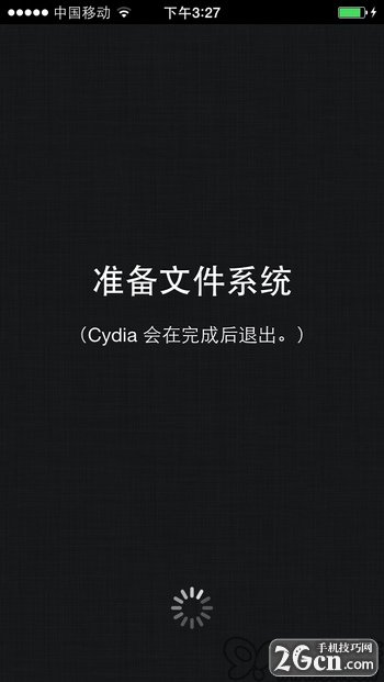 9.如下圖所示,Cydia會自動准備文件系統,然後設備自動注銷,屏幕暗掉時,請按Home鍵,開機解鎖.