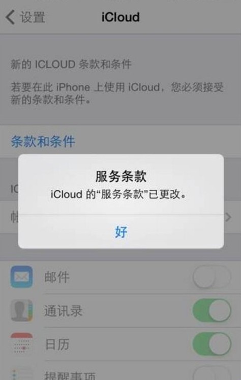 4.然後去設置-〉icloud 中用你的這個蘋果賬號和密碼登陸,它會再次問你是否接受icloud條款,選擇接受即可。