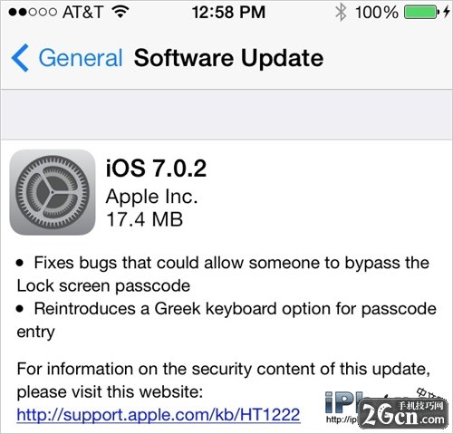 本次的更新大小為17.4MB,iOS7用戶可以直接進行OTA在線更新。