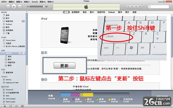 4、選擇“更新”,iTunes開始進行固件的升級更新: