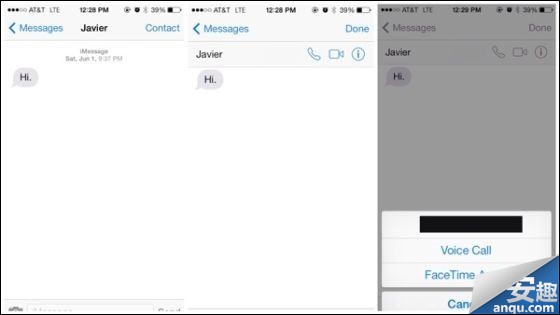 短信:點擊“聯系人”選項,可顯示語音、Facetime及信息,如果點擊語音,則會給出語音呼叫或是Facetime音頻的額外選項。