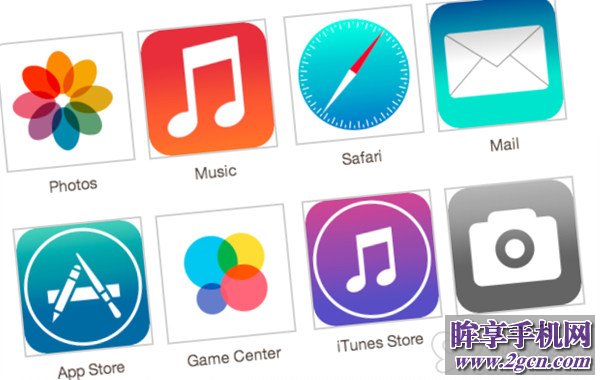 FaceTime、相機、計算器、時鐘、聯系人、郵件、指南針、股市、地圖、天氣、備忘錄、視頻、信息、報刊雜志、Passbook、設置、提醒事項、Game Center 和計算器。