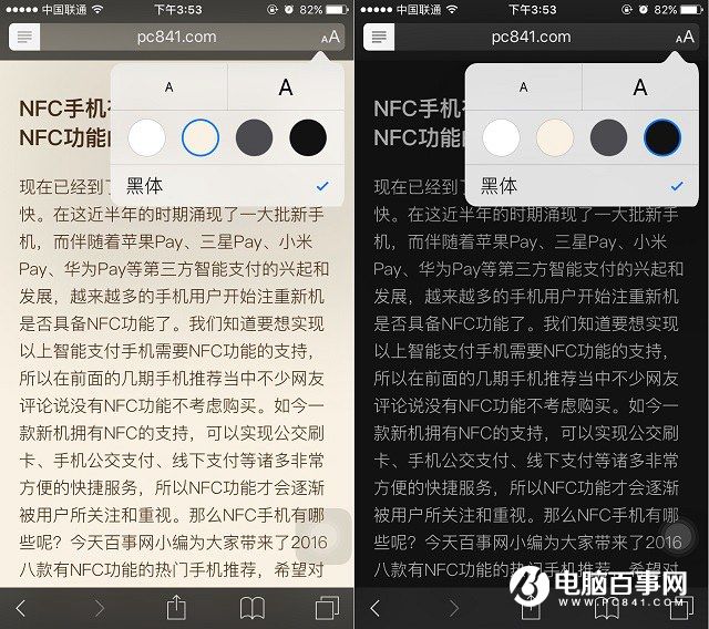 1、在iPhone或iPad中打開 Safari 浏覽器,然後打開一個網頁,比如這裡打開電腦百事網手機版,然後隨意打開一篇文章,打開文章後,在左上角會有一個“四橫條”圖標,這個就是“閱讀模式”開關,如下圖所示。