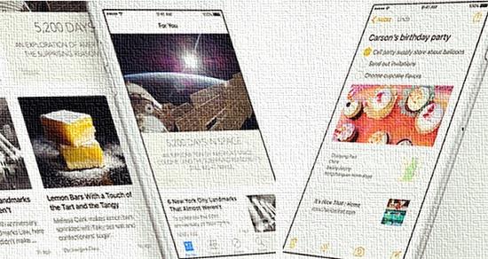 iOS 9上,整合兼並的大刀砍向了新聞和筆記類應用。當用戶給自己的iPhone更新到iOS 9後,一眼就能看見多出的“新聞”應用,其服務類似Flipboard的新聞聚合,可為用戶推送感興趣的新聞資訊,且排版精致,有圖片、視頻、動畫等多種 表現形式,新聞源方面更是獲得了多家主流媒體及雜志的支持。而以往不太受重視的備忘錄應用也在iOS 9上獲得全面升級,可以往筆記裡加入照片、地圖、網址、清單等項目,直接在上面畫個草圖也沒有問題,不知此刻的印象筆記、有道雲筆記們作何感想。