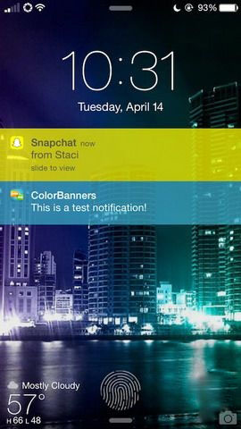《ColorBanners》也是一款通知橫幅美化插件,功能上與前面介紹的《DathBanners Pro》相似,可以根據軟件的圖標來改變通知橫幅的背景顏色。此外這款插件可以指定背景顏色,而不是自動匹配。