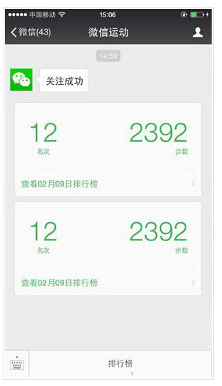 微信運動是微信去年開發的基於第三方個人運動數據實現微信好友運動數據記錄和PK的一項服務,微信運動通過讀取第三方運動數據實現與微信好友運動數據PK,目前微信運動支持iOS和安卓兩大移動平台,iPhone5S/iPhone6/iPhone6 Plus無需第三方設備可直接讀取運動數據。第三方手環類可通過掃描二維碼或者手環應用內部同微信運動連接。