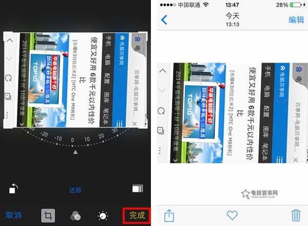 4,最後,當旋轉自己想要的角度之後,點擊一下右下角的“完成”按鈕即可保存編輯後的照片,如下圖所示:
