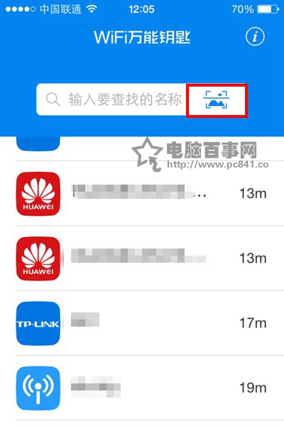 5.截完圖之後,我們點擊一下下圖圖標識的掃碼圖片的按鈕,系統會自動匹配圖片中所獲取的wifi熱點信息並解析,以獲取藍色鑰匙,如下圖所示: